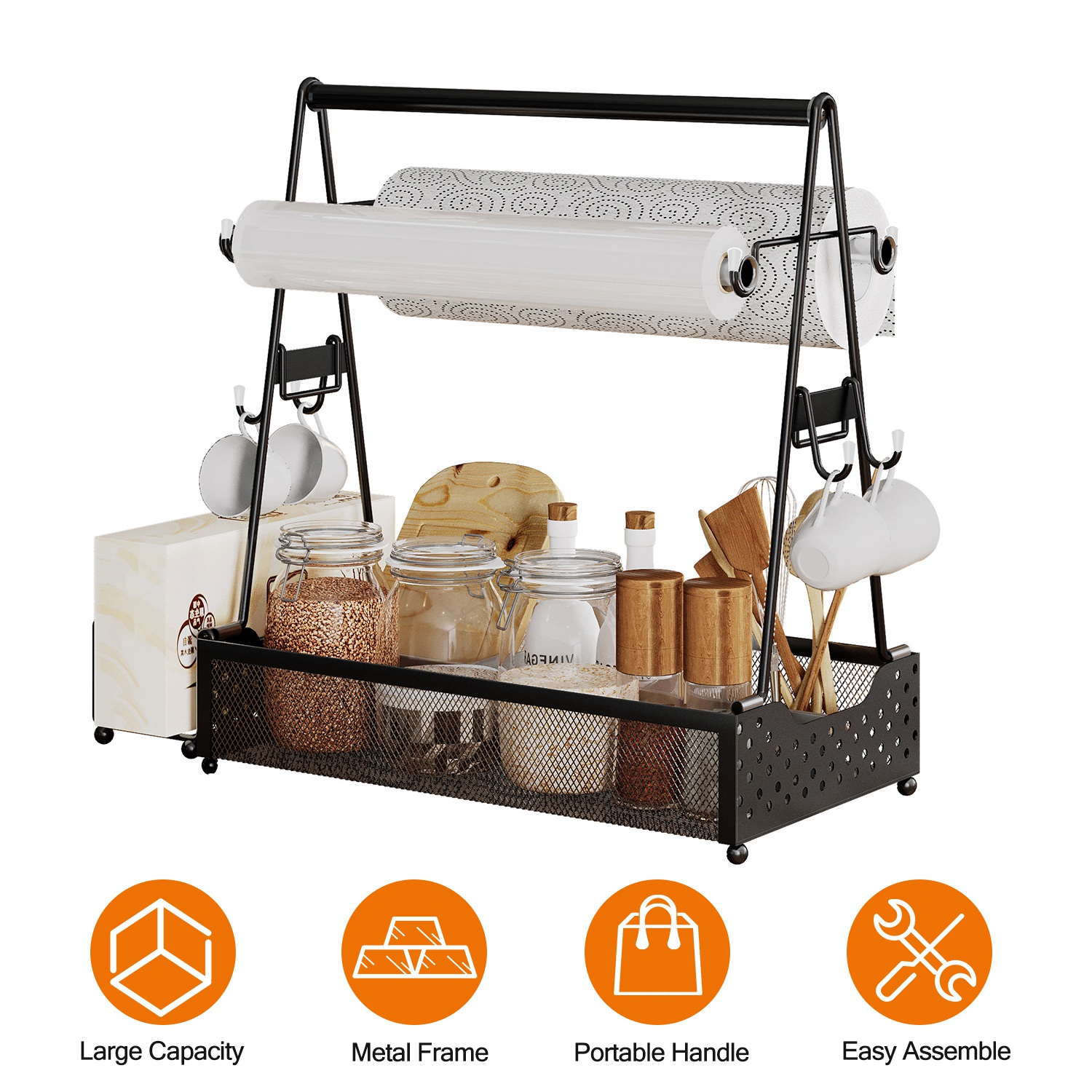 Home > Utensil Caddy Metal Grill Caddy with Paper Towel Holders Utensil Holder for Outdoor Picnic Barbecue Camping Grilling Tools Storage Organizer Barbecue